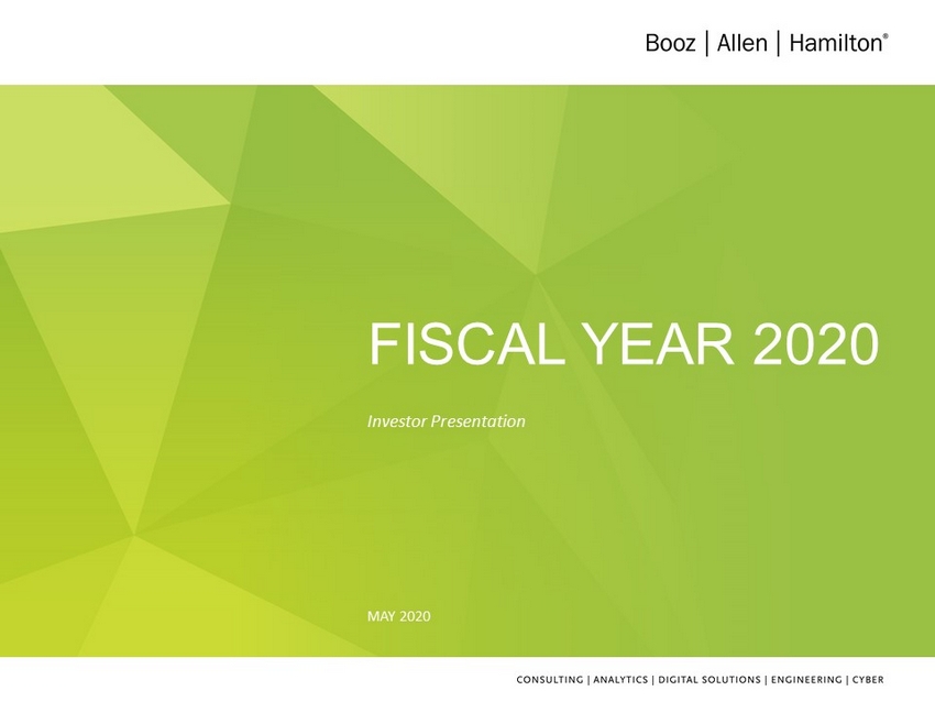 2 DISCLAIMER Forward Looking Safe Harbor Statement Certain statements contained in this presentation and in related comments by our management include “forward - looking statements” within the meaning of the Private Securities Litigation Reform Act of 1995. Examples of forward - looking statements include information concerning Booz Allen’s preliminary f inancial results, financial outlook and guidance, including forecasted revenue, Diluted EPS, Adjusted Diluted EPS, free cash flow, future quarterly dividends, and future impro vem ents in operating margins, as well as any other statement that does not directly relate to any historical or current fact. In some cases, you can identify forward - looking stat ements by terminology such as “may,” “will,” “could,” “should,” “forecasts,” “expects,” “intends,” “plans,” “anticipates,” “projects,” “outlook,” “believes,” “estimates,” “predict s,” “potential,” “continue,” “preliminary,” or the negative of these terms or other comparable terminology. Although we believe that the expectations reflected in the forward - looking stat ements are reasonable, we can give you no assurance these expectations will prove to have been correct. These forward - looking statements relate to future events or our future financial performance and involve known and unknown risks , uncertainties and other factors that may cause our actual results, levels of activity, performance or achievements to differ materially from any future results, levels of a cti vity, performance or achievements expressed or implied by these forward - looking statements. A number of important factors could cause actual results to differ materially from those co ntained in or implied by these forward - looking statements, including those factors discussed in our filings with the Securities and Exchange Commission (SEC), including our An nual Report on Form 10 - K for the fiscal year ended March 31, 2020, which can be found at the SEC’s website at www.sec.gov. All forward - looking statements attributable to us or pe rsons acting on our behalf are expressly qualified in their entirety by the foregoing cautionary statements. All such statements speak only as of the date made and, except as req uired by law, we undertake no obligation to update or revise publicly any forward - looking statements, whether as a result of new information, future events or otherwise. Note Regarding Non - GAAP Financial Data Information Booz Allen discloses in the following information Revenue, Excluding Billable Expenses, Adjusted Operating Income, Adjusted E BIT DA, Adjusted EBITDA Margin on Revenue, Adjusted EBITDA Margin on Revenue, Excluding Billable Expenses, Adjusted Net Income, Adjusted Diluted EPS, and Free Cash Flo w w hich are not recognized measurements under GAAP, and when analyzing Booz Allen’s performance or liquidity as applicable, investors should ( i ) evaluate each adjustment in our reconciliation of revenue to Revenue, Excluding Billable Expenses, operating income to Adjusted Operating Income, net income to Adjusted EBITDA, Adjusted EBITDA Margin on Re ven ue, Adjusted EBITDA Margin on Revenue, Excluding Billable Expenses, Adjusted Net Income and Adjusted Diluted Earnings Per Share, and net cash provided by operating act ivities to Free Cash Flow, and the explanatory footnotes regarding those adjustments, each as defined under GAAP, (ii) use Revenue, Excluding Billable Expenses, Adjusted Op era ting Income, Adjusted EBITDA, Adjusted EBITDA Margin on Revenue, Adjusted EBITDA Margin on Revenue Excluding Billable Expenses, Adjusted Net Income, and Adjusted Diluted EPS in addition to, and not as an alternative to revenue, operating income, net income or diluted EPS as measures of operating results, and (iii) use Free Cash Flow in additi on to and not as an alternative to net cash provided by operating activities as a measure of liquidity, each as defined under GAAP. The Financial Appendix includes a reconciliation of Revenue, Excluding Billable Expenses, Adjusted Operating Income, Adjusted EBITDA, Adjusted EBITDA Margin on Revenue, Adjusted EBITDA Margin on Revenue, Excluding Billable E xpe nses, Adjusted Net Income, Adjusted Diluted EPS, and Free Cash Flow to the most directly comparable financial measure calculated and presented in accordance with GA AP. Booz Allen presents these supplemental performance measures because it believes that these measures provide investors and securities analysts with important supplem ent al information with which to evaluate Booz Allen’s performance, long term earnings potential, or liquidity, as applicable and to enable them to assess Booz Allen’s perf orm ance on the same basis as management. These supplemental performance and liquidity measurements may vary from and may not be comparable to similarly titled measures by o the r companies in Booz Allen’s industry. With respect to our expectations under “Investment Thesis,” reconciliation of Adjusted Diluted EPS guidance to the closest corresp ond ing GAAP measure is not available without unreasonable efforts on a forward - looking basis due to our inability to predict our stock price, equity grants and dividend decl arations during the course of fiscal 2021. Projecting future stock price, equity grants and dividends to be declared would be necessary to accurately calculate the difference betw een Adjusted Diluted EPS and GAAP EPS as a result of the effects of the two - class method and related possible dilution used in the calculation of EPS. Consequently, any attempt to d isclose such reconciliation would imply a degree of precision that could be confusing or misleading to investors. We expect the variability of the above charges to have an unpre dic table, and potentially significant, impact on our future GAAP financial results. For the same reason, a reconciliation of Adjusted EBITDA Margin on Revenue guidance to the clo ses t 